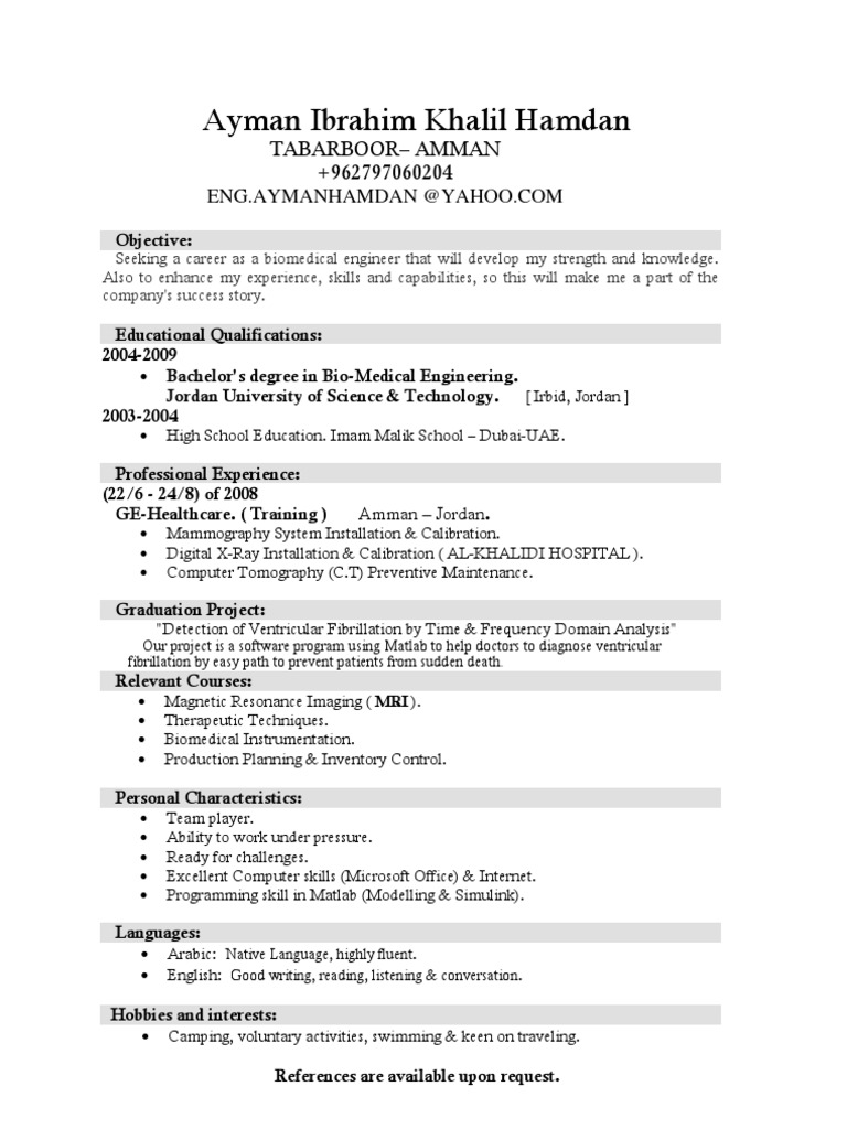 98 best resume format for biomedical engineers. Biomedical engineer resume. Get samples of the best cover letters listed by job and type. Example resumes for this position highlight such skills as providing mechanical design fabrication assembling testing and documentation of the components modules and complete medical devices. Biomedical engineers research and develop new medical technologies.
