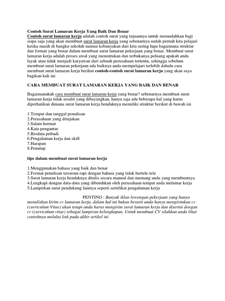 Format surat lamaran kerja. 12 contoh cv lamaran pekerjaan yang baik dan benar file doc nanang budiutomo 8 april 2017 education no comments contoh cv sebelum kamu melamar suatu pekerjaaan pasti kamu akan diminta untuk membuat cv curriculum vitae atau jika dalam bahasa indonesia adalah daftar riwayat hidup terlebih dahulu. Surat lamaran kerja harus menarik supaya dibaca oleh pihak hrd yang membacanya agar lebih tertarik lagi dan akhirnya mau memanggilmu ke tahap wawancara.