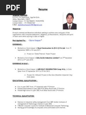 Your secretary cum store keeper resume is your first meeting with the employer pay considerable attention to it. The template for the store keeper resume that we have designed is a perfect example. Exercise general control over all activities in stores department. Its actually very simple.